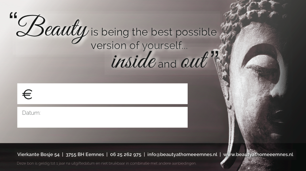 Wilt u iemand eens op een bijzondere manier verrassen of verwennen, denk dan eens aan een originele Cadeaubon van Beauty @ Home.