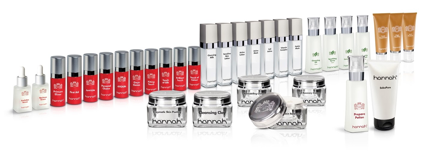 In het hannah systeem wordt er gewerkt volgens stappen reinigen, peelen, stimuleren, herstellen en beschermen welke worden ondersteund door de producten van de vier productlijnen.